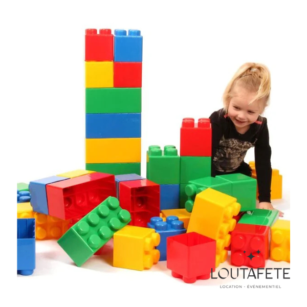 Vous pourrez réaliser toutes les constructions dont vous rêviez à taille humaine. Le tout, avec ces briques en plastiques géantes prévues pour la location et les animations enfants.