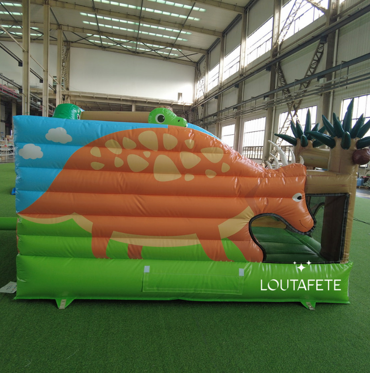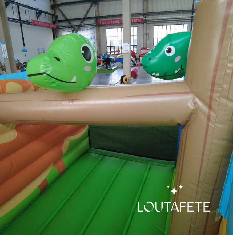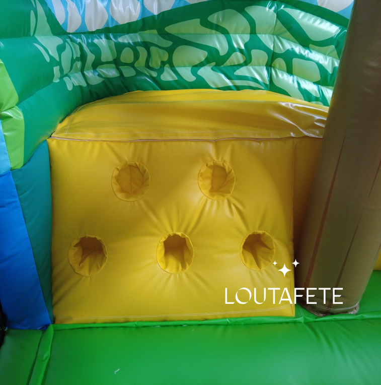 Parfaitement adaptée aux très jeunes enfants, cette structure gonflable compacte sur le thème des dinosaures combine sécurité, douceur et amusement.