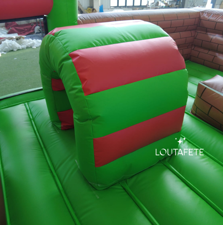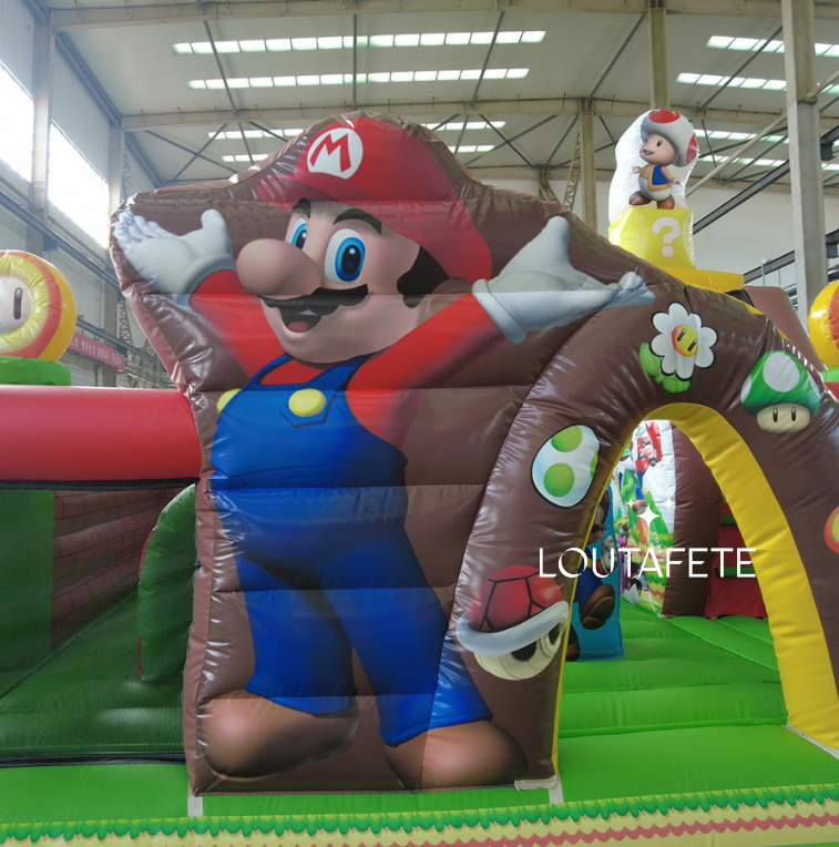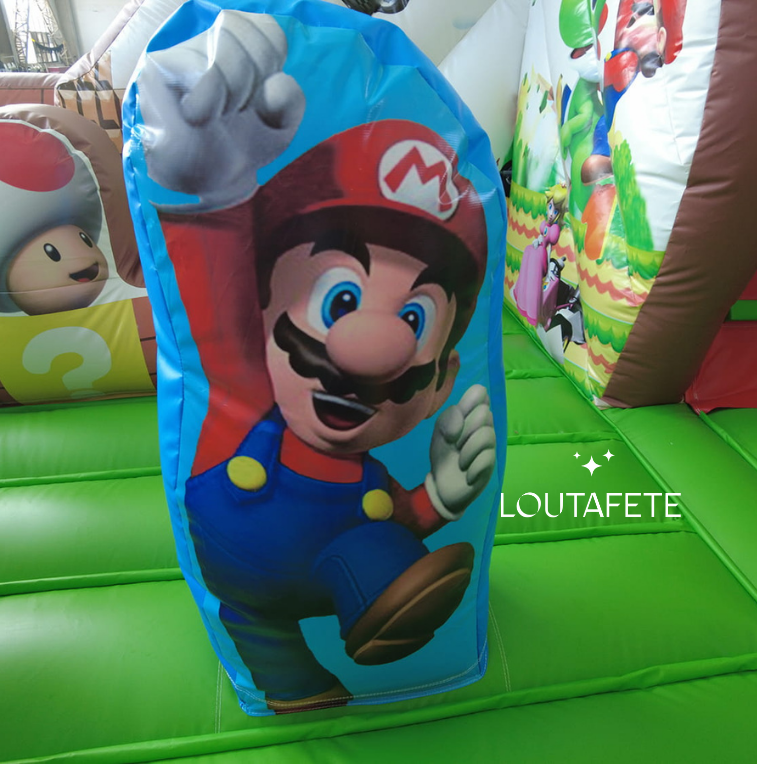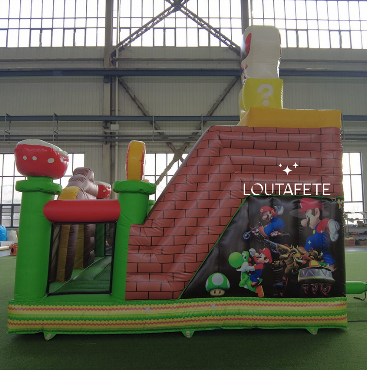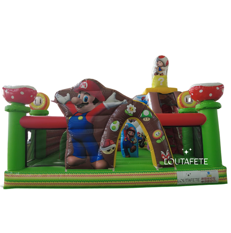 Plongez dans l’univers coloré de Mario avec cette structure gonflable 5 × 6 mètres, équipée d’obstacles ludiques et d’un toboggan.