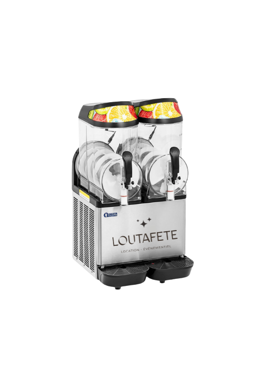 Avec ses 2 cuves de 12 litres, vous pouvez proposer plusieurs parfums de granités, sorbets ou cocktails glacés en même temps. C’est l’atout parfait pour rafraîchir vos invités tout en ajoutant de la couleur et du fun à votre événement !
